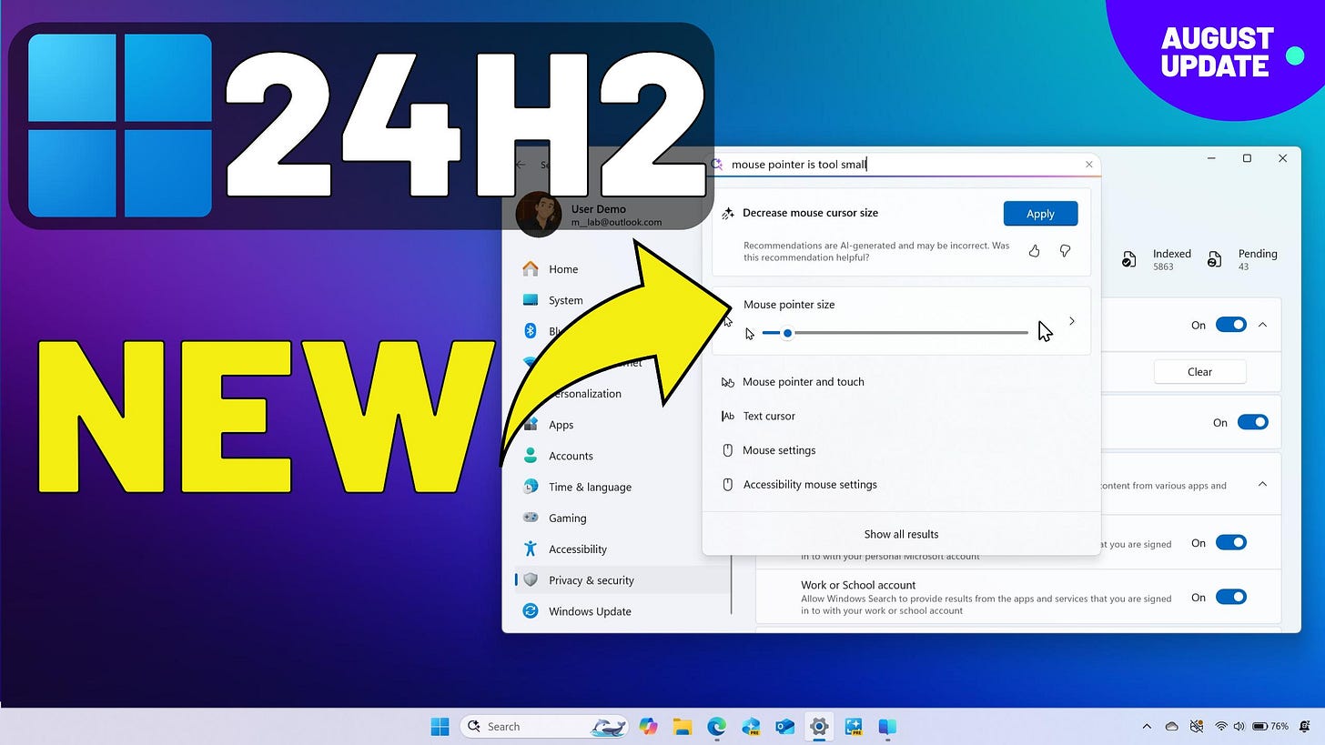 ⤵️ Windows 11 August 2025 new features